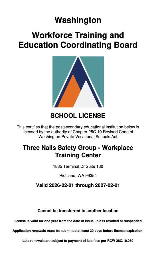 Atomic Technical Institute (ATI) is proud to be a licensed vocational school in Washington State through the Washington State Training Board (WTB). This recognition reflects the Board's careful review of our training programs, instructors, and academic standards before certification is granted.